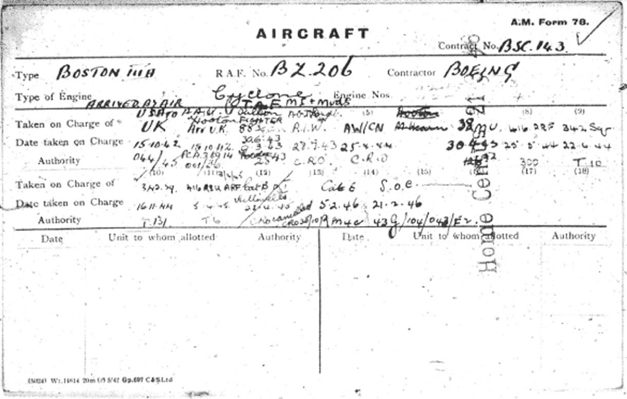Document of the month, March 2015: Movement cards Douglas Boston IIIA Document of the month: AMF78 (RAF Movement cards) on pdf of 183 Boston IIIA from batch BZ196-BZ399 Share this: Click to share on Facebook (Opens in new window) Facebook Click to share on X (Opens in new window) X Click to email a link to a friend (Opens in new window) Email